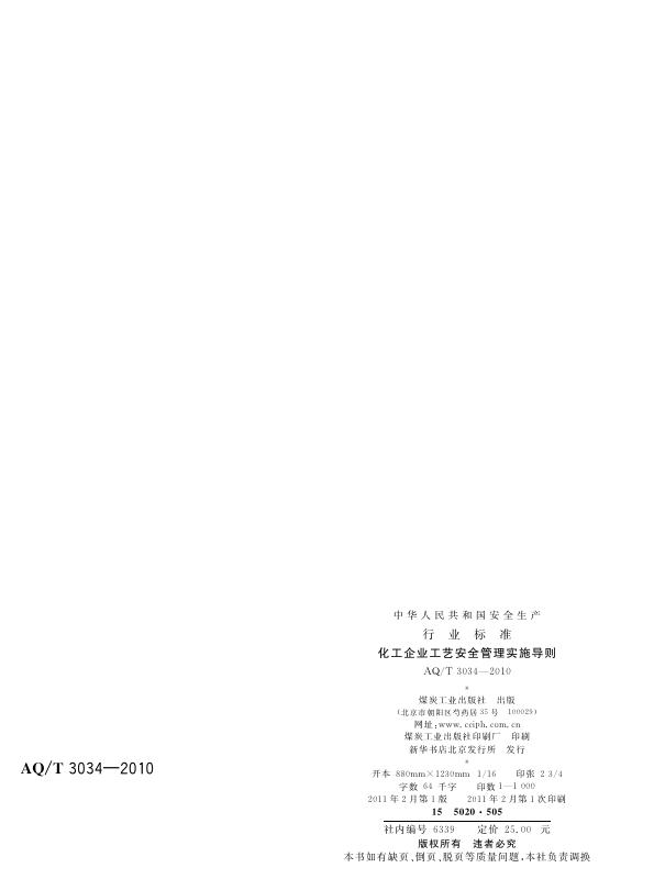 AQ/T 3034-2010 化工企业工艺安全管理实施导则