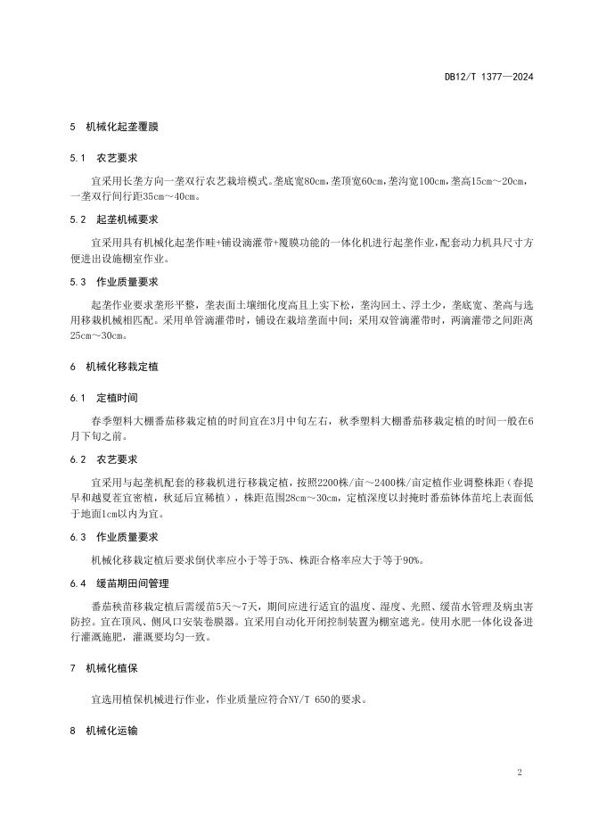 DB12/T 1377-2024 塑料大棚番茄宜机化生产技术规范