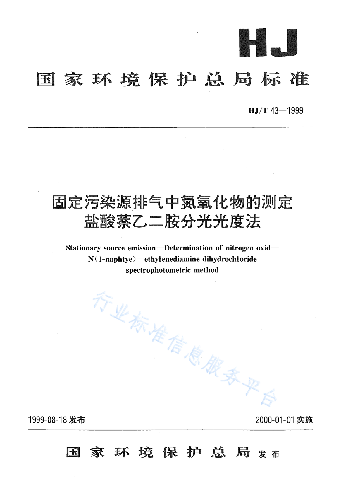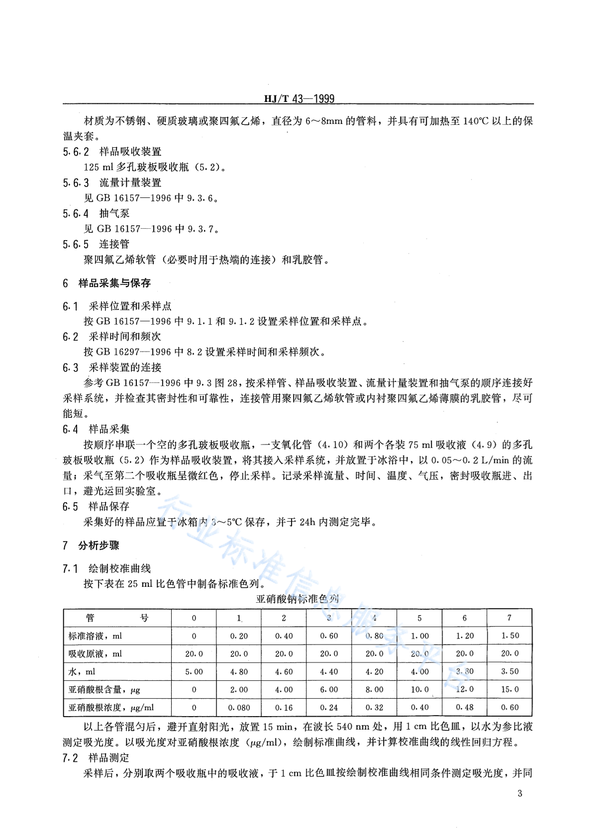 HJ/T 43-1999 固定污染源排气中氮氧化物的测定 盐酸萘乙二胺分光光度法