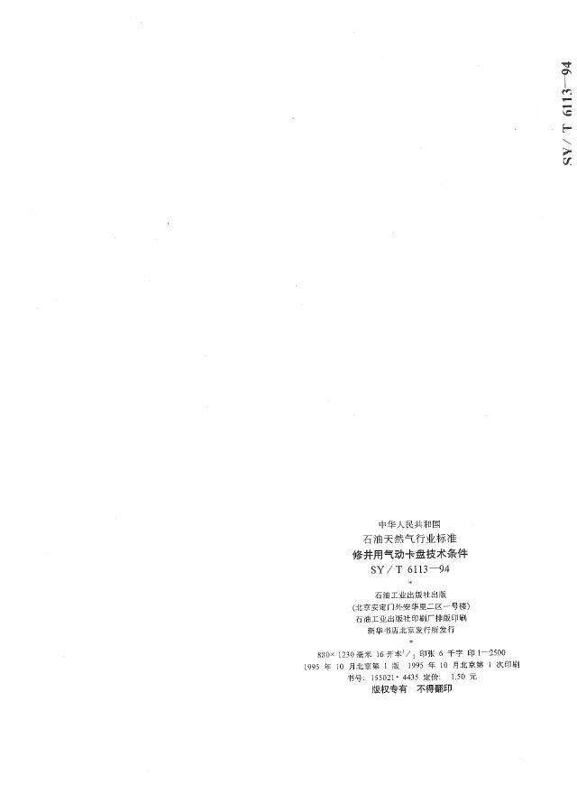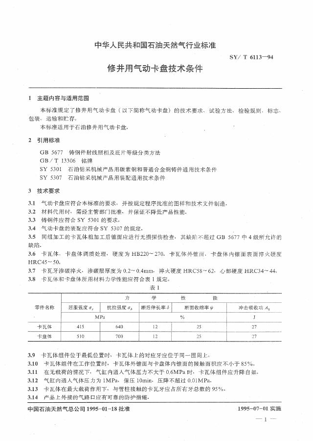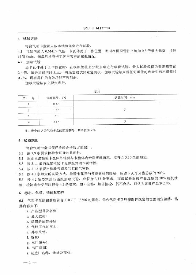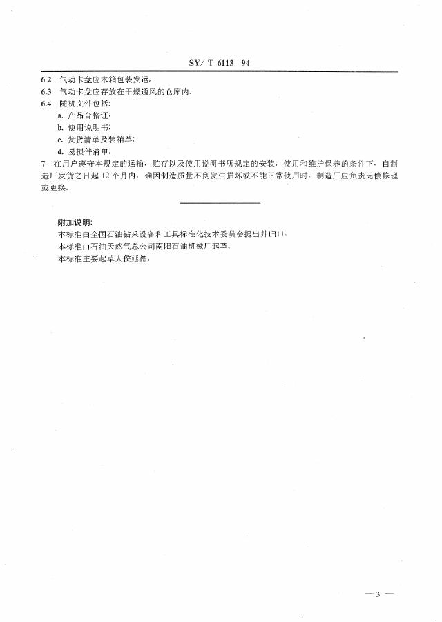 SY/T 6113-1994 修井用气动卡盘技术条件