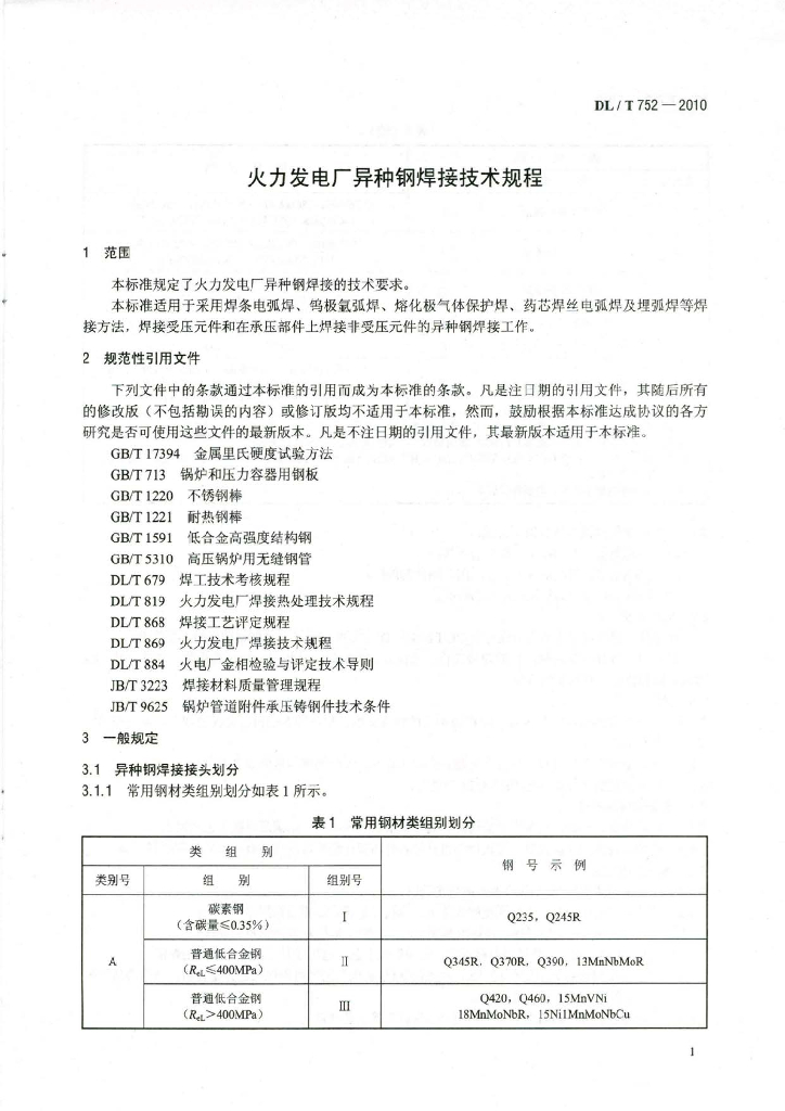 DL/T 752-2010 火力发电厂异种钢焊接技术规程