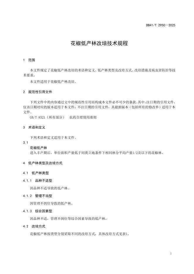 DB41/T 2950-2025 花椒低产林改培技术规程