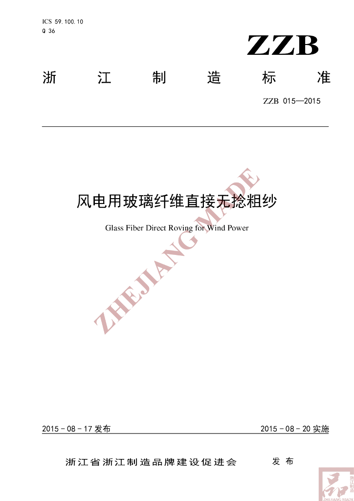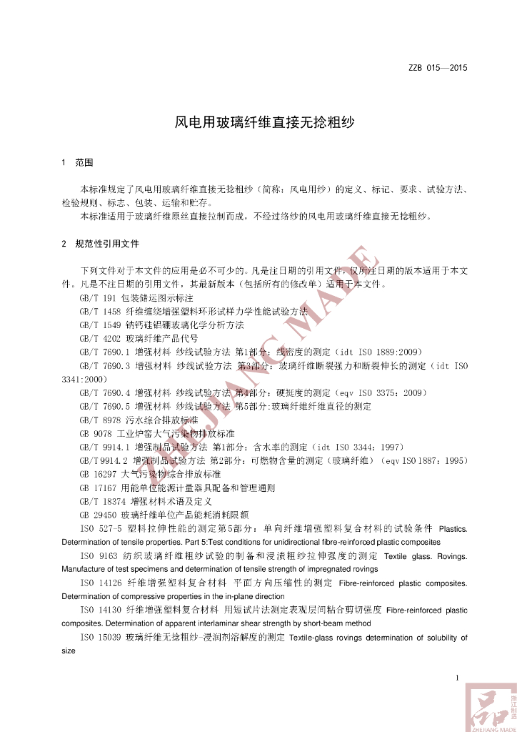 T/ZZB 015-2015 风电用玻璃纤维直接无捻粗纱