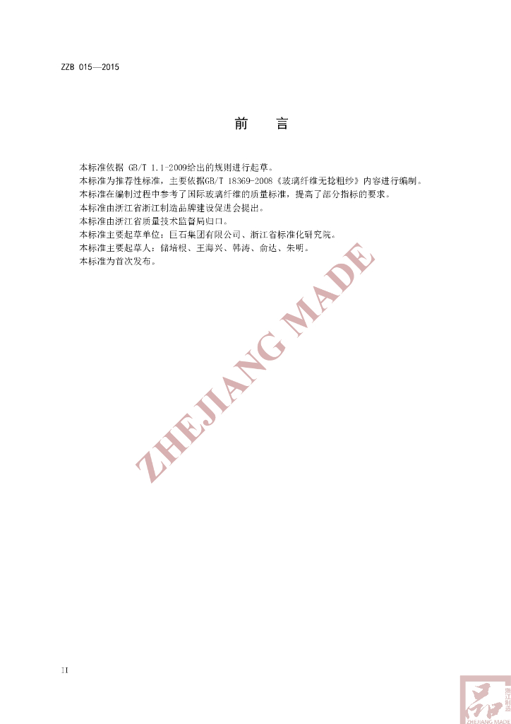 本标准主要起草单位:巨石集团有限公司、浙江省标准化研究院。