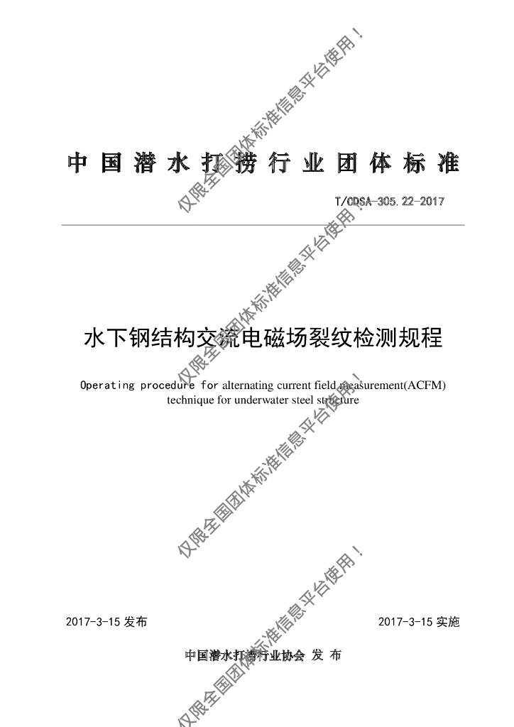 T/CDSA 305.22-2017 水下钢结构交流电磁场裂纹检测规程