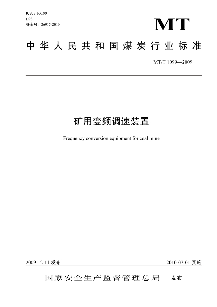 MT/T 1099-2009 矿用变频调速装置