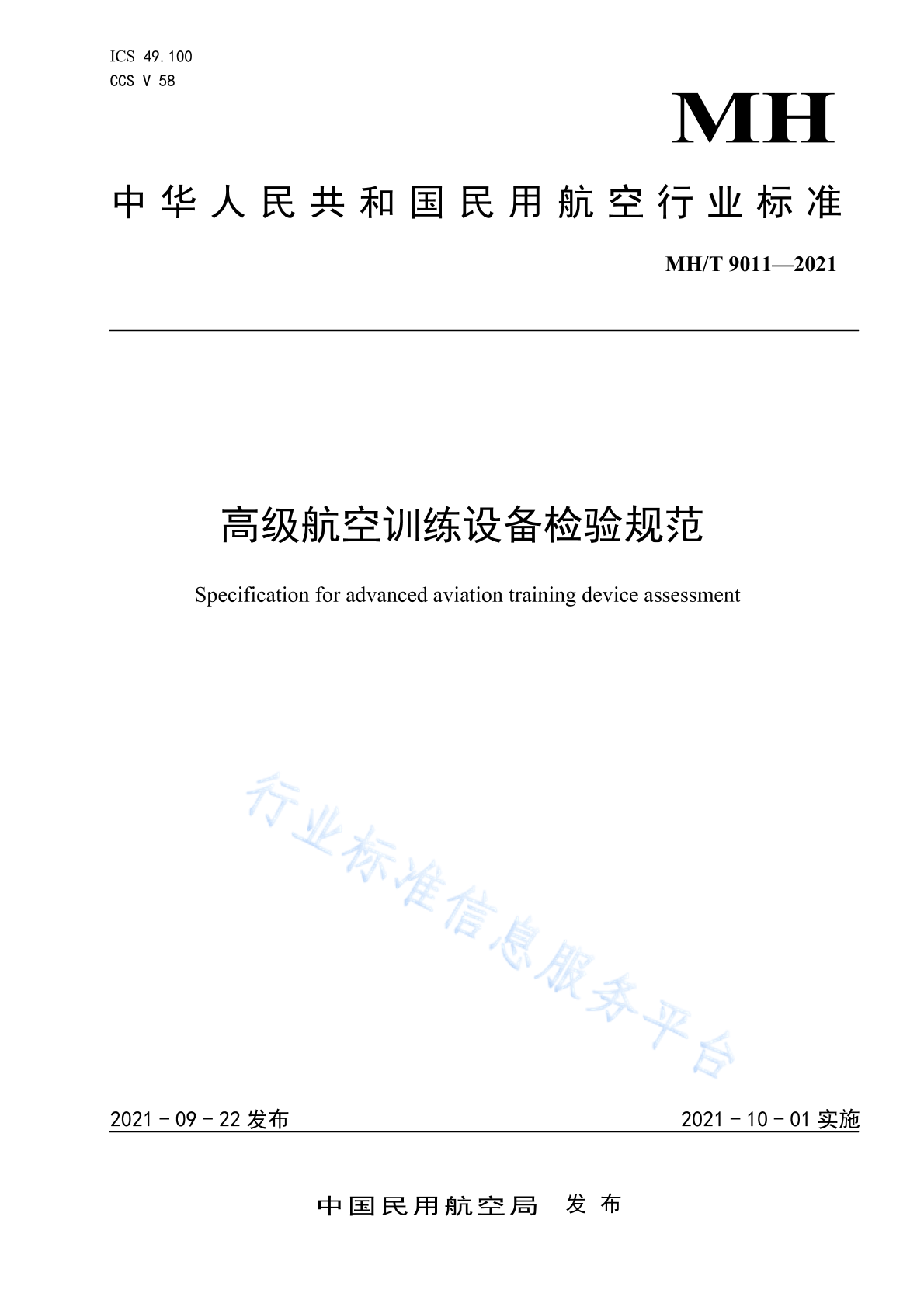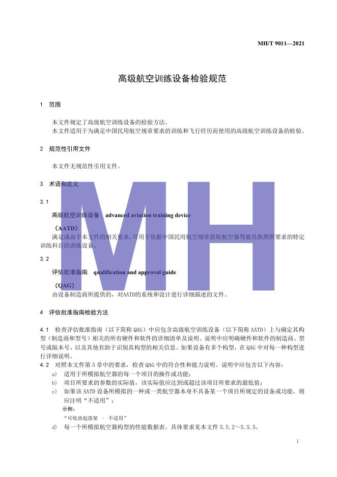 MH/T 9011-2021 高级航空训练设备检验规范
