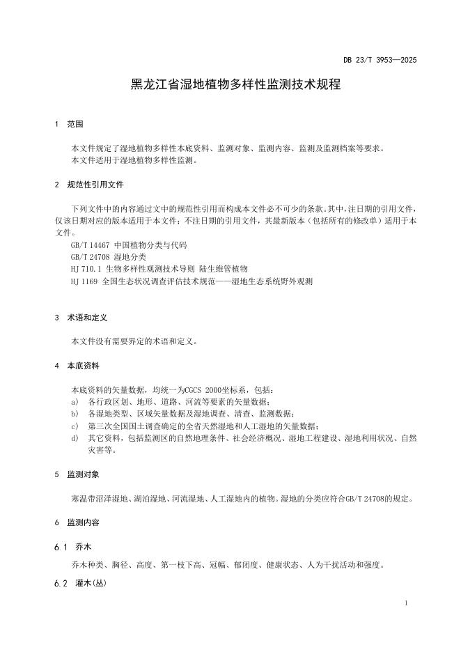 DB23/T 3953-2025 黑龙江省湿地植物多样性监测