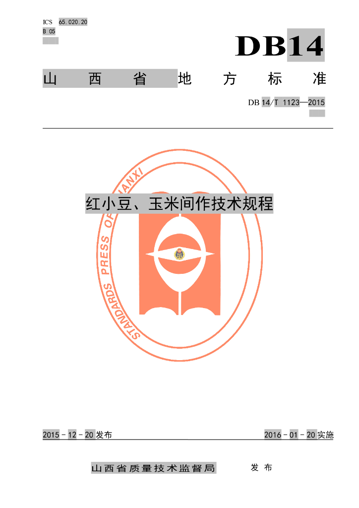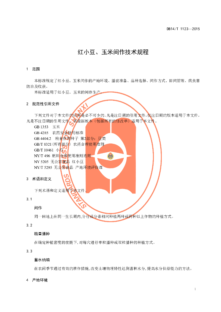 DB14/T 1123-2015 红小豆、玉米间作技术规程