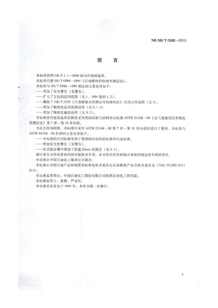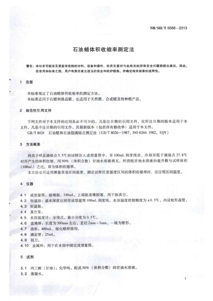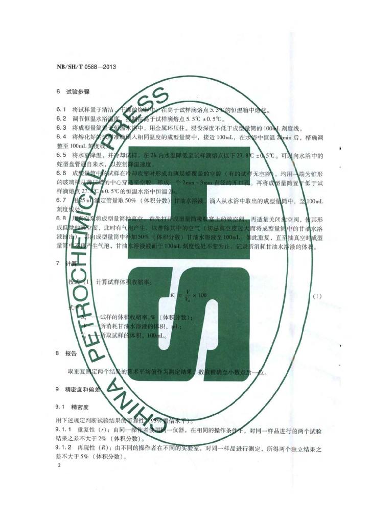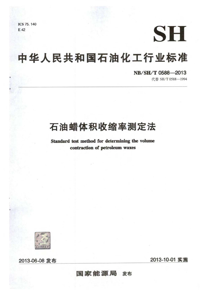 NB/SH/T 0588-2013 石油蜡体积收缩率测定法