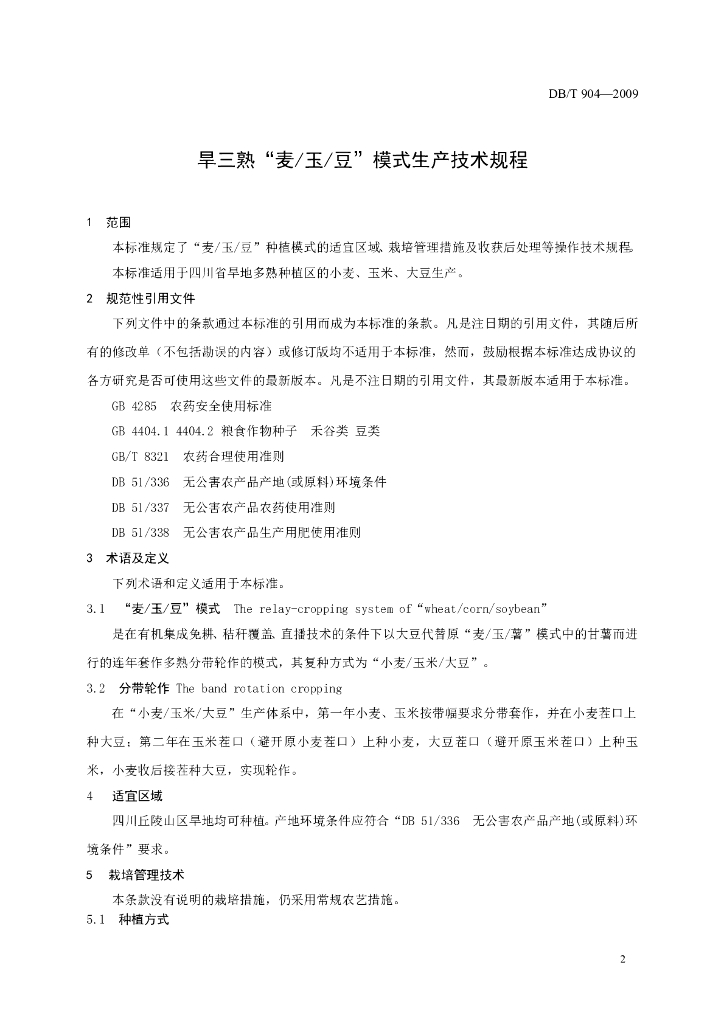 DB51/T 904-2009 旱三熟“麦/玉/豆”模式生产技术规程