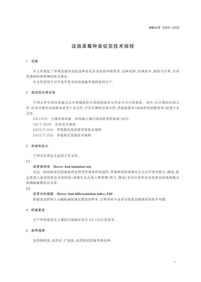 DB32/T 5304-2025 设施草莓种苗促花技术规程