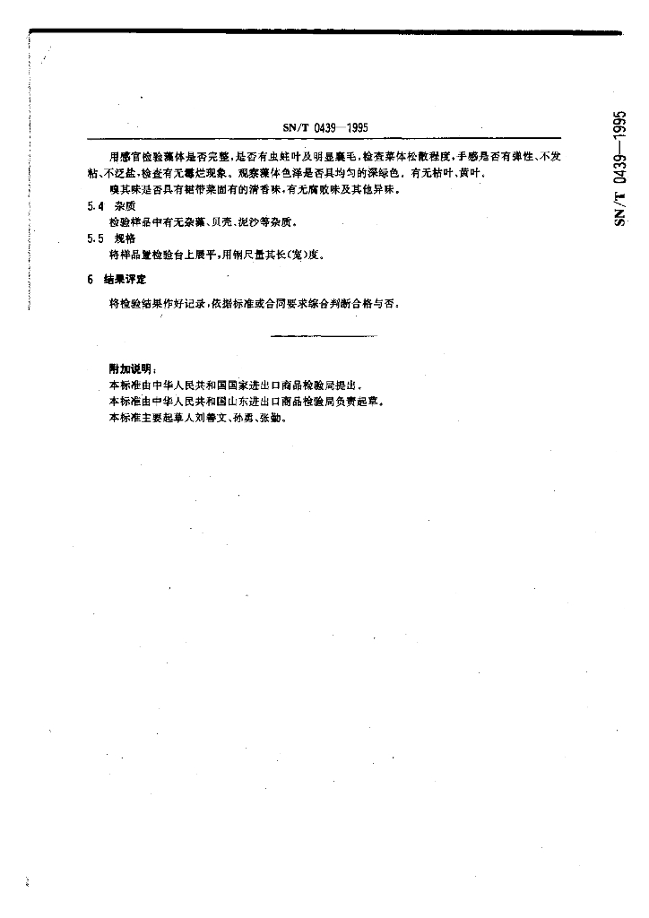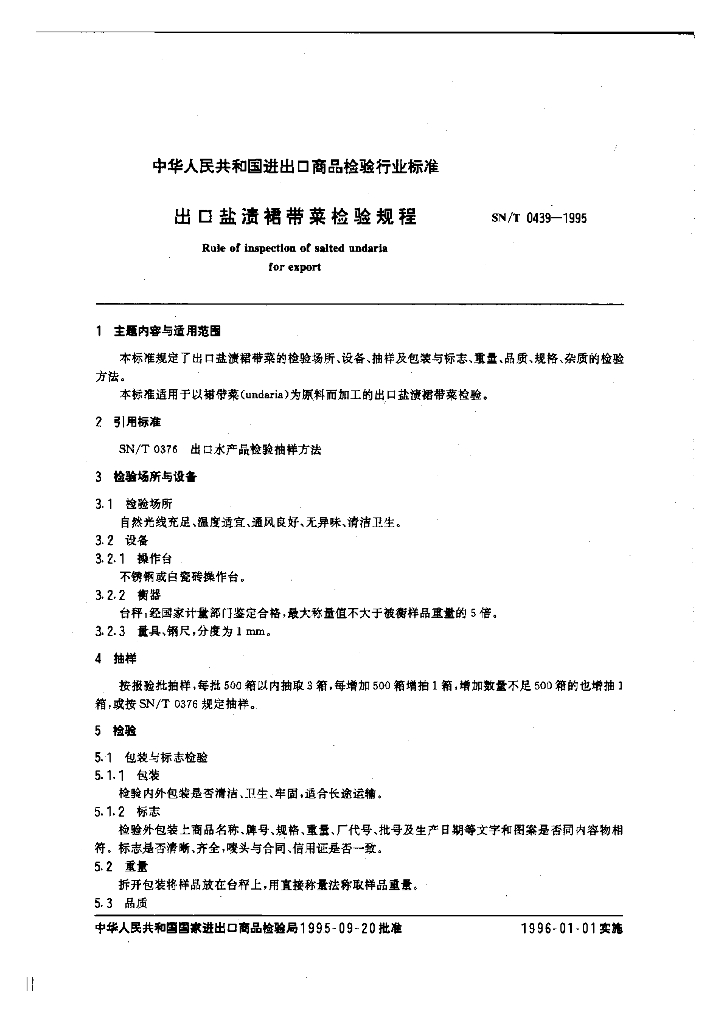 SN/T 0439-1995 出口盐渍裙带菜检验规程