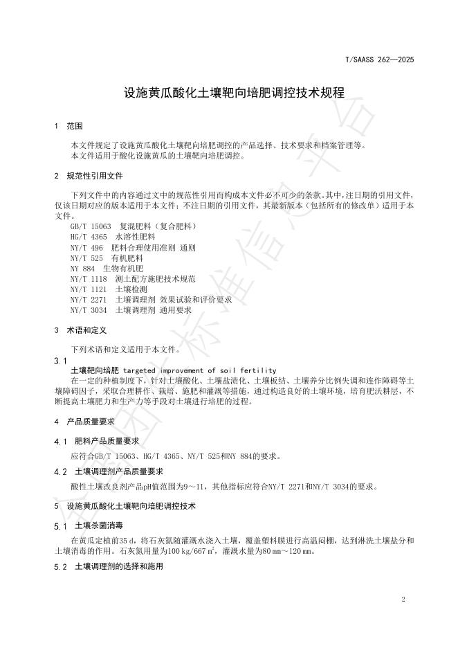 T/SAASS 262-2025 设施黄瓜酸化土壤靶向培肥调控技术规程
