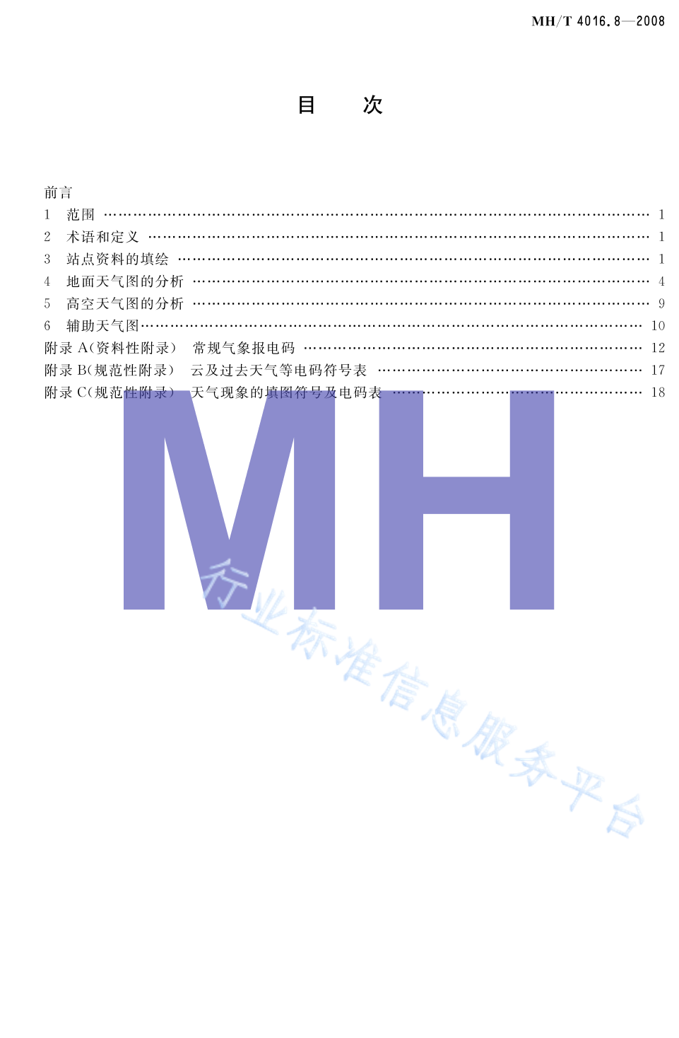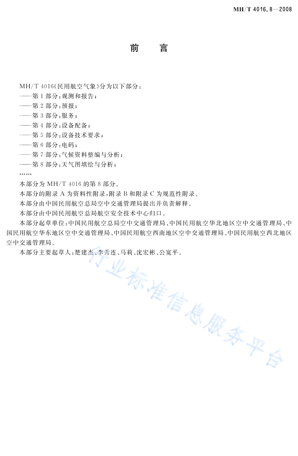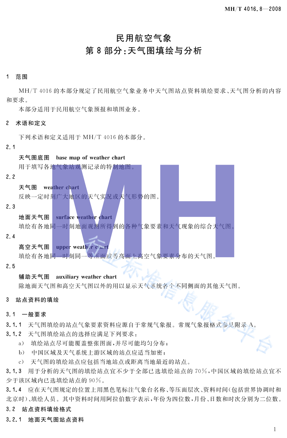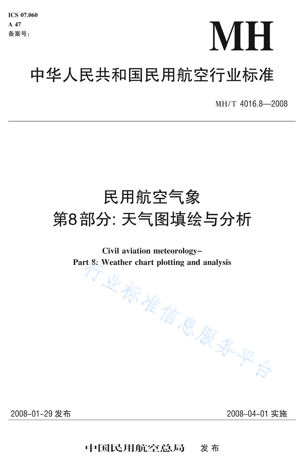MH/T 4016.8-2008 民用航空气象 第8部分:天气图填绘与分析