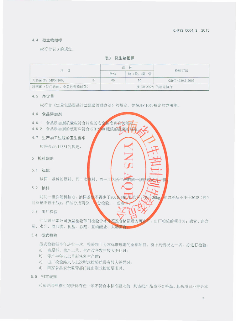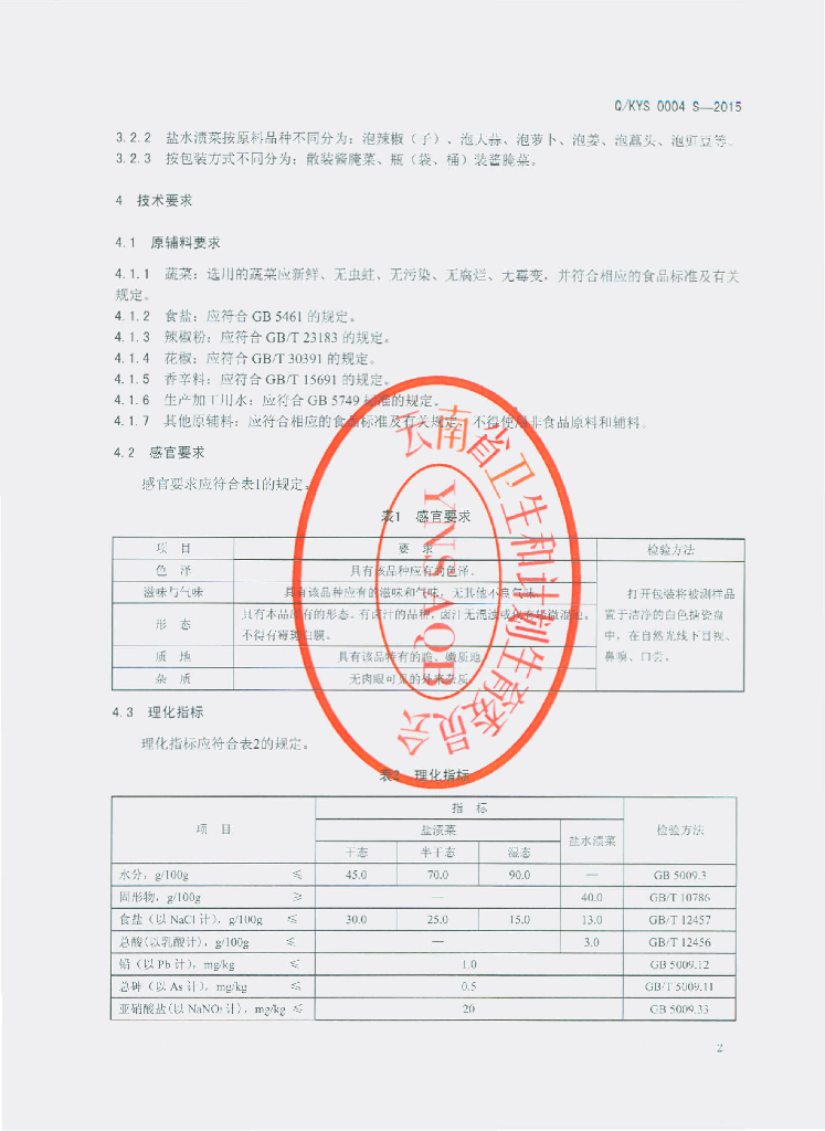 Q/KYS 0004S-2015 昆明七甸永圣酱菜厂食品有限公司 七甸酱腌菜