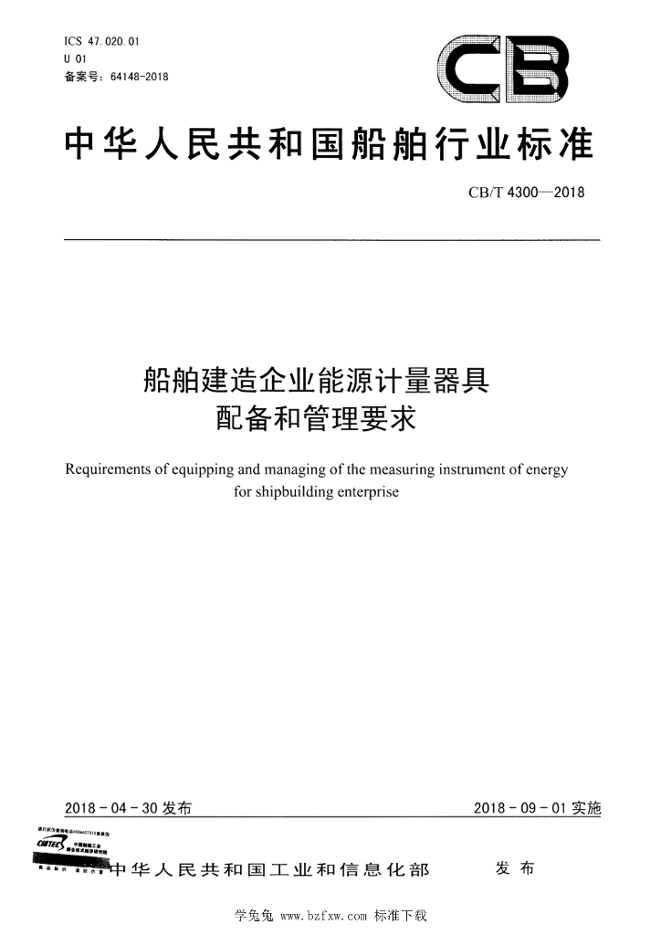 CB/T 4300-2018 船舶建造企业能源计量器具配备和管理要求