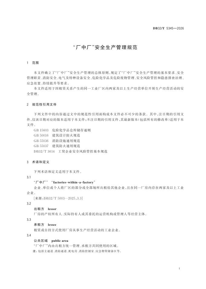 DB32/T 5345-2026 “厂中厂”安全生产管理规范