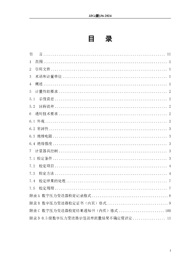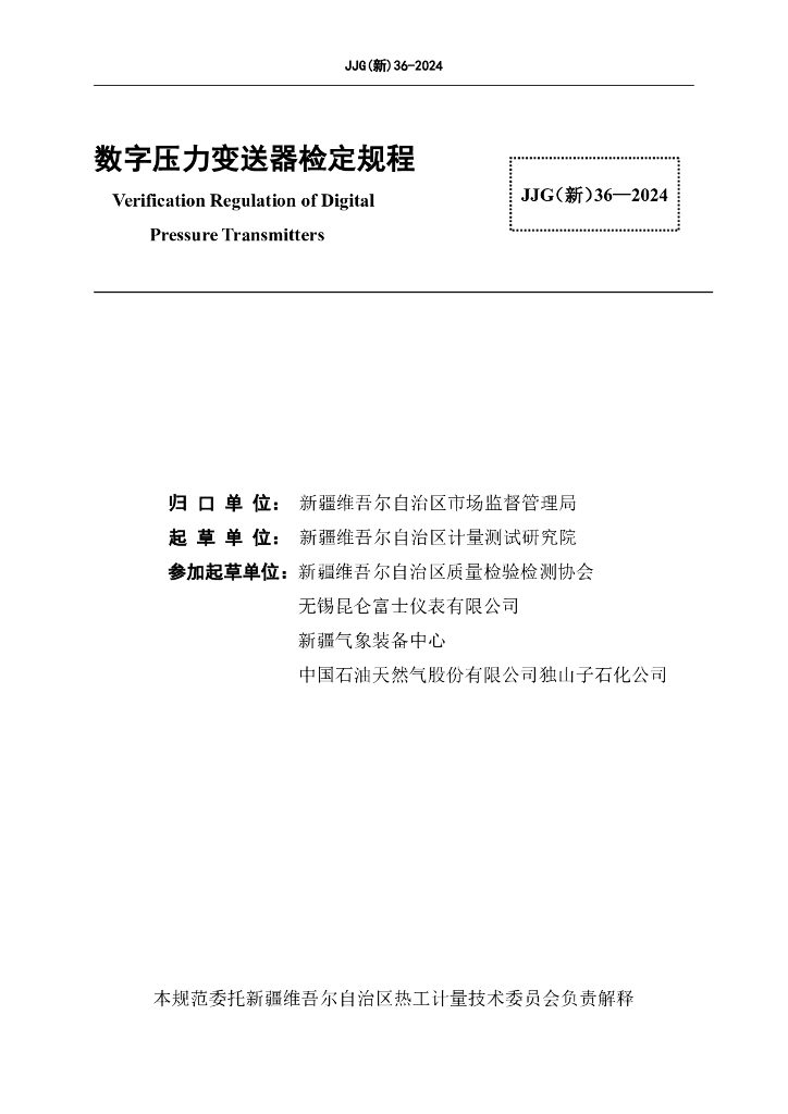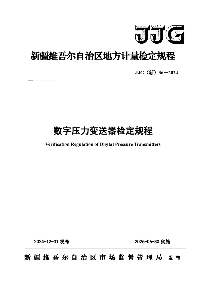 JJG(新)36-2024 数字压力变送器检定规程