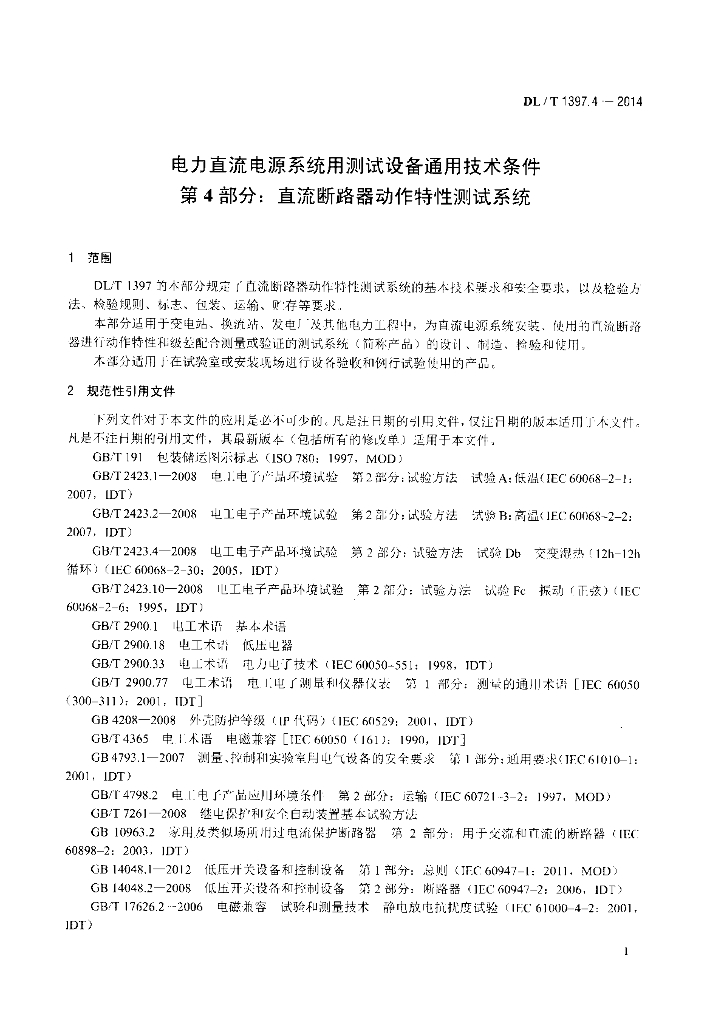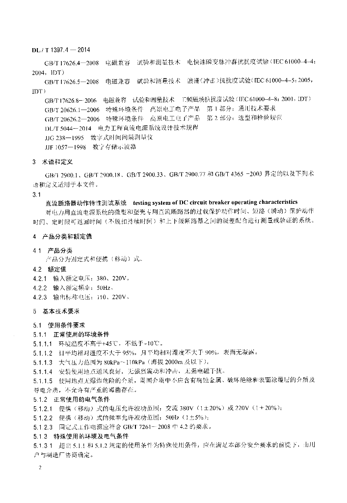 DL/T 1397.4-2014 电力直流电源系统用测试设备通用技术条件 第4部分:直流断路器动作特性测试系统