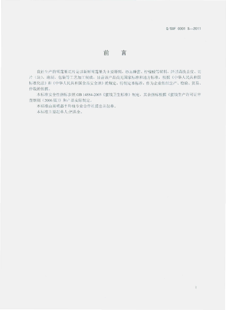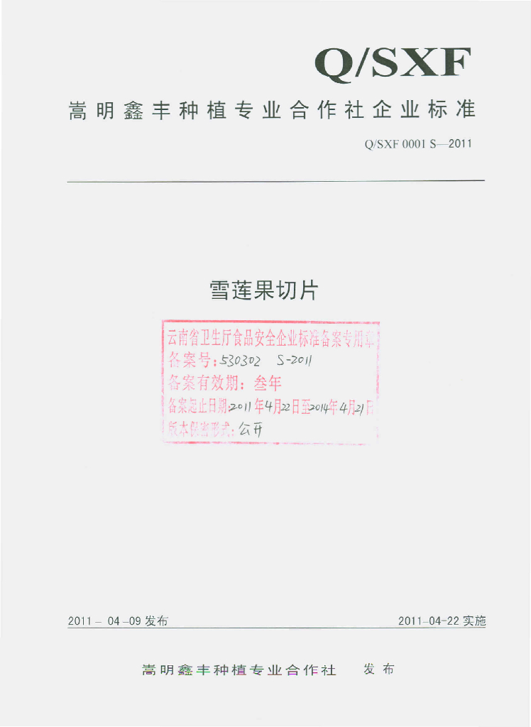 Q/XF 0001S-2011 雪莲果切片