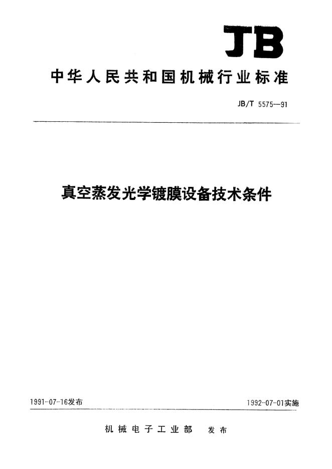 JB/T 5575-1991 真空蒸发光学镀膜设备技术条件