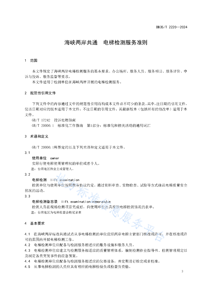 DB35/T 2220-2024 海峡两岸共通 电梯检测服务准则