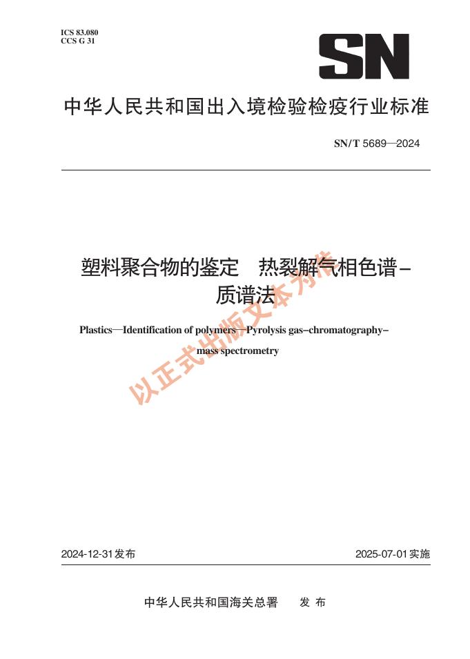 SN/T 5689-2024 塑料 聚合物的鉴定 热裂解气相色谱-质谱法