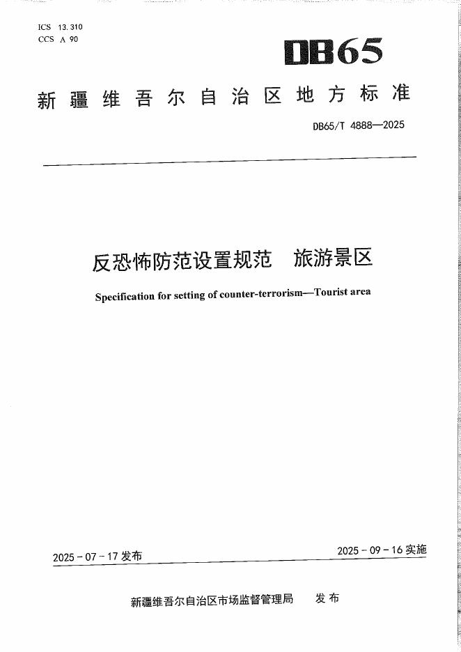 DB65/T 4888-2025 反恐怖防范设置规范 旅游景区