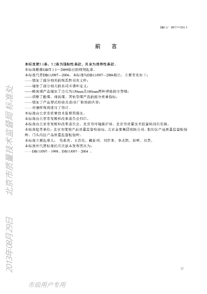 DB11/ 097-2013 低硫散煤及制品