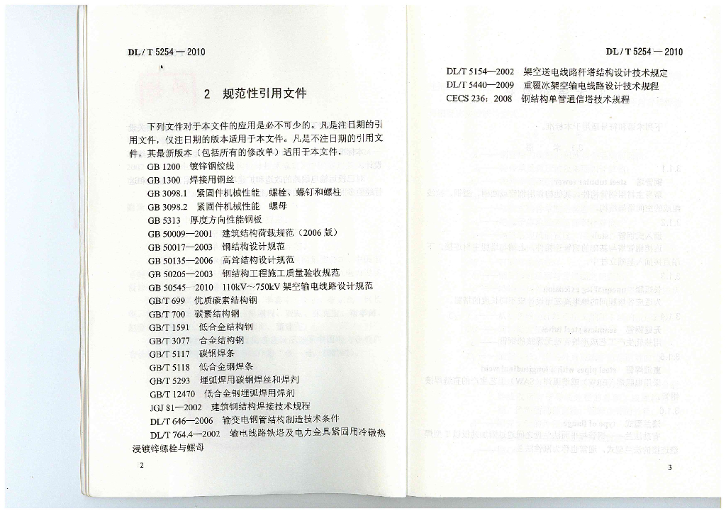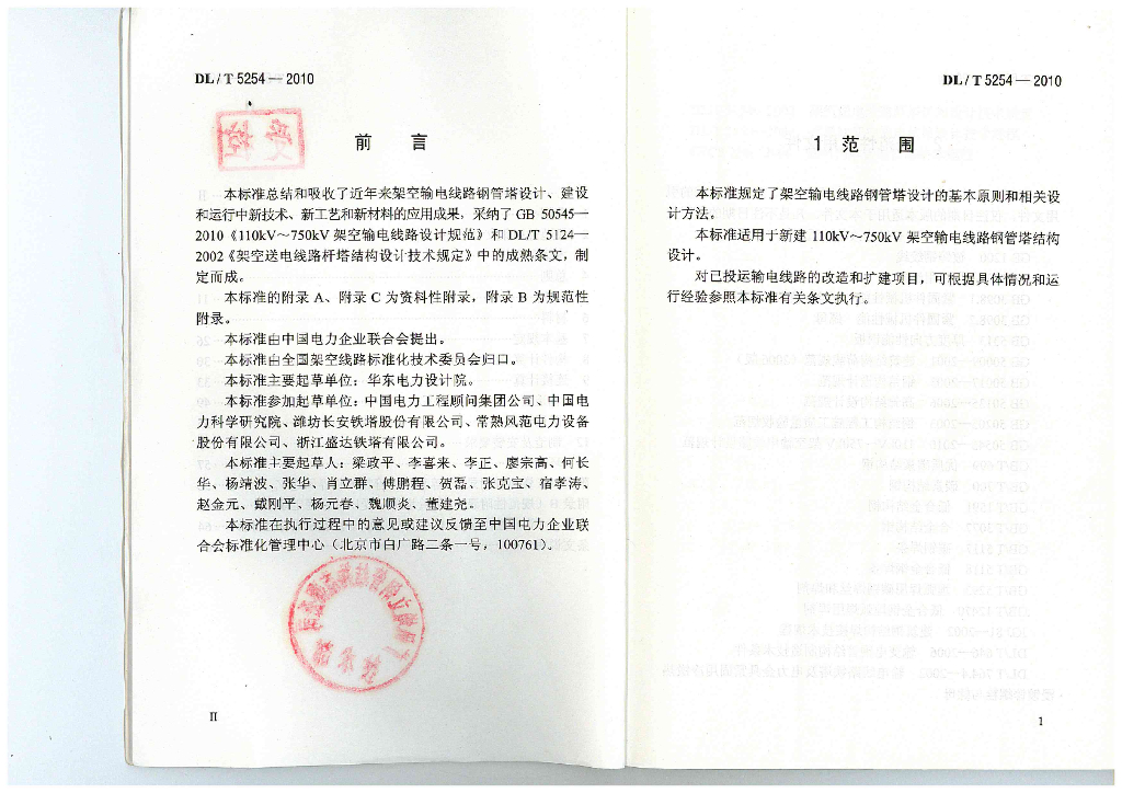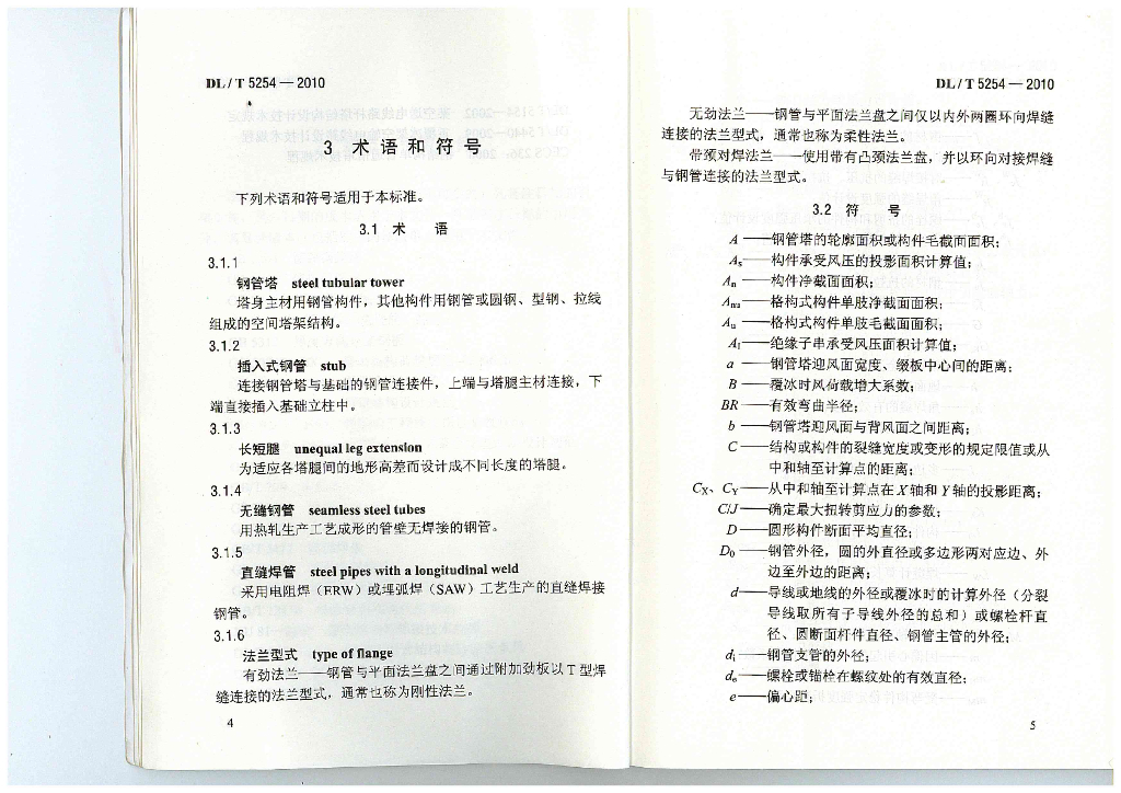 DL/T 5254-2010 架空输电线路钢管塔设计技术规定(附条文说明)