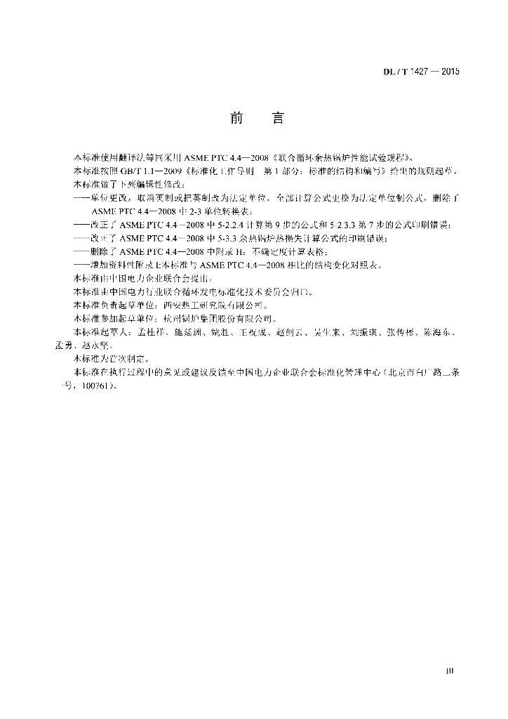 DL/T 1427-2015 联合循环余热锅炉性能试验规程
