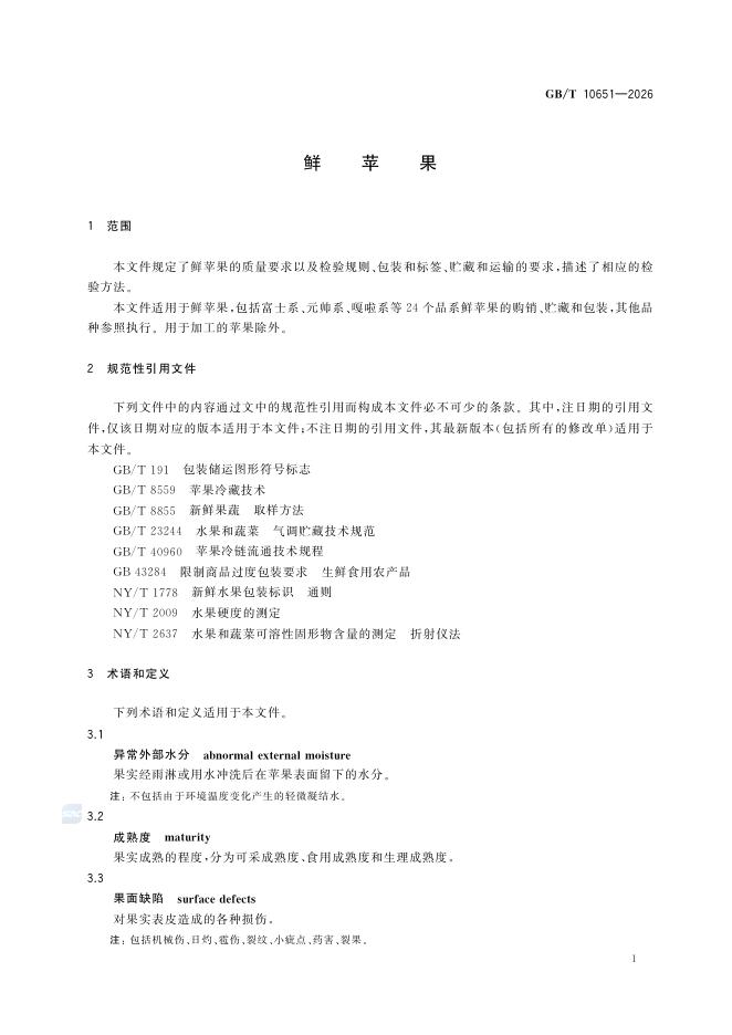 GB/T 10651-2026 鲜苹果