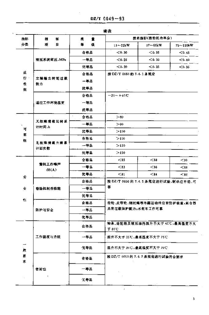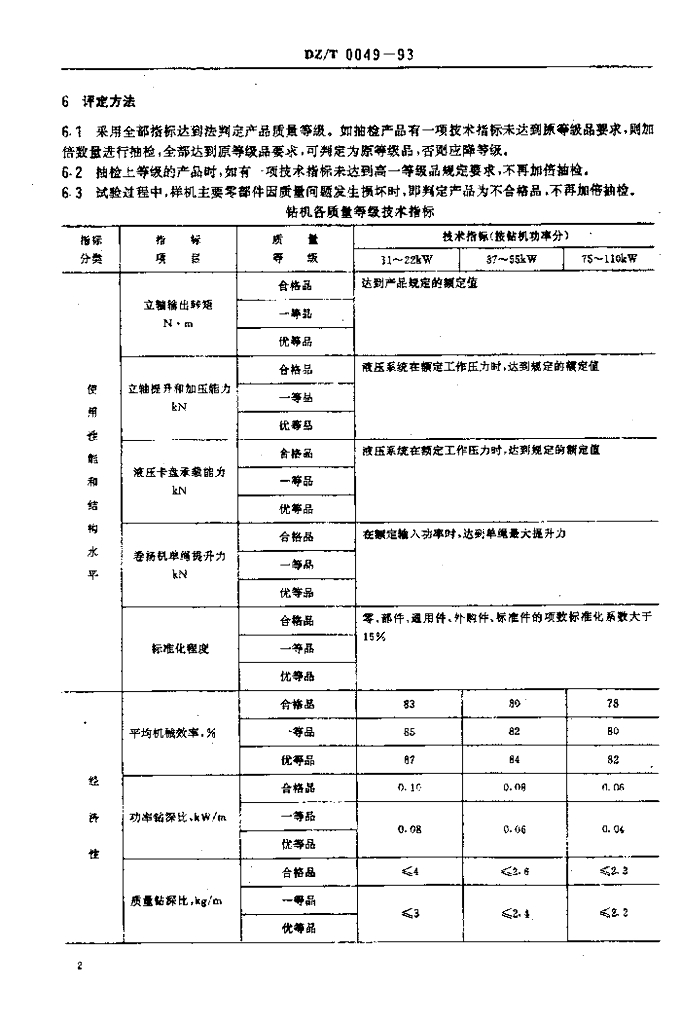 DZ/T 0049-1993 立轴式地质岩心钻机质量分等规定
