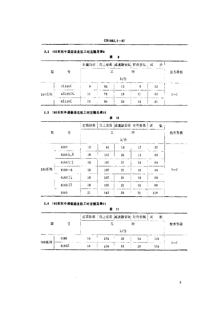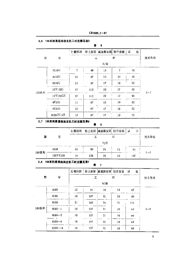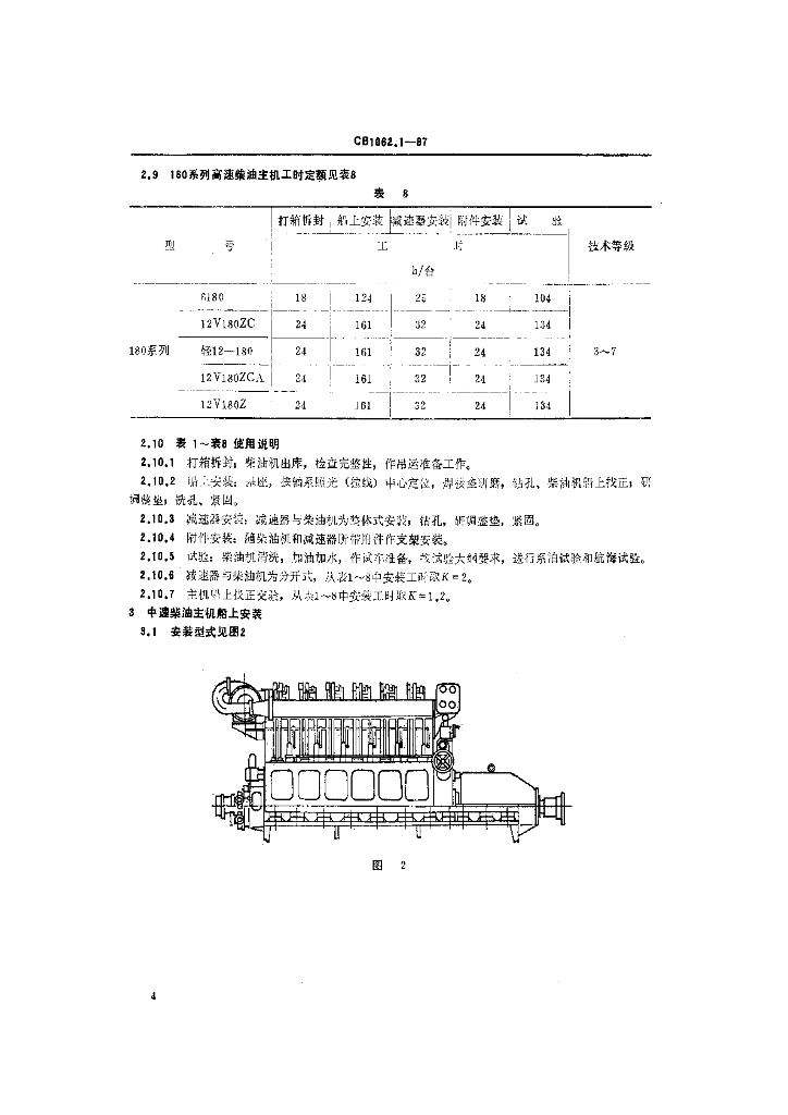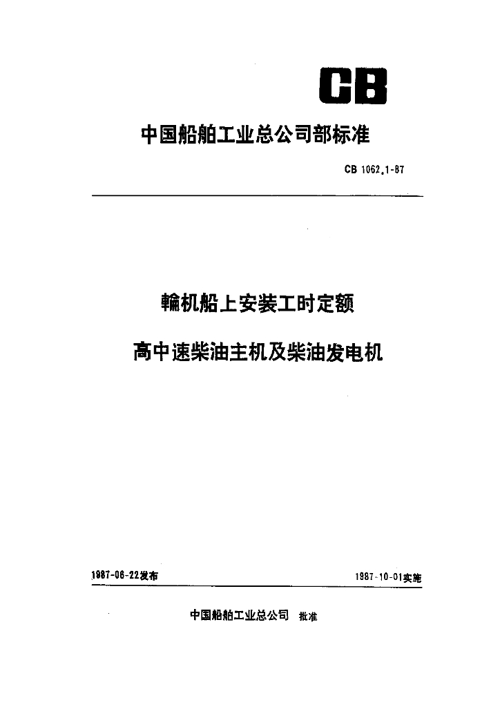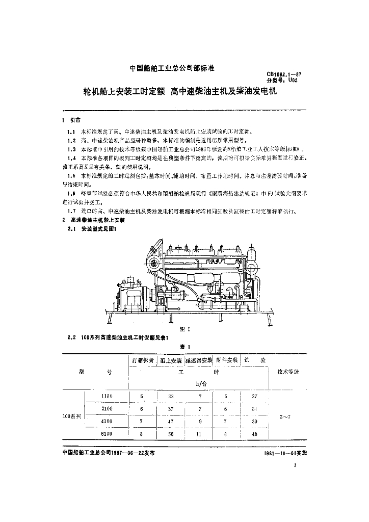 CB 1062.1-1987 轮机船上安装工时定额 高中速柴油主机及柴油发电机