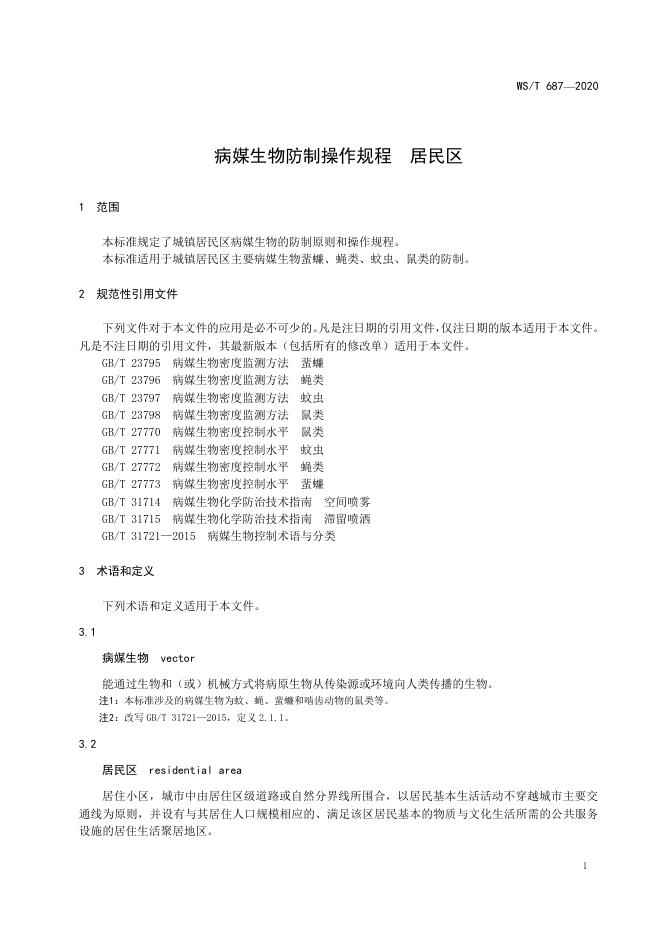 WS/T 687-2020 病媒生物防制操作规程 居民区