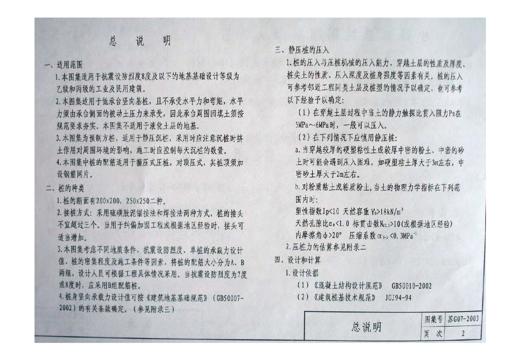 苏G07-2003 小截面预制钢筋混凝土方桩图集