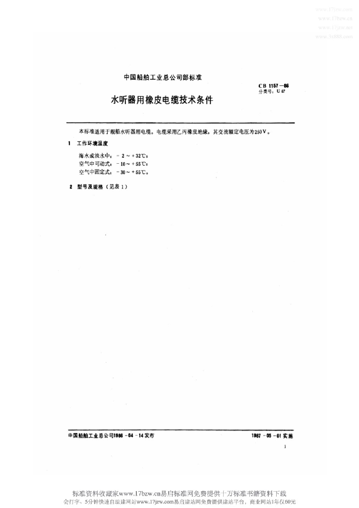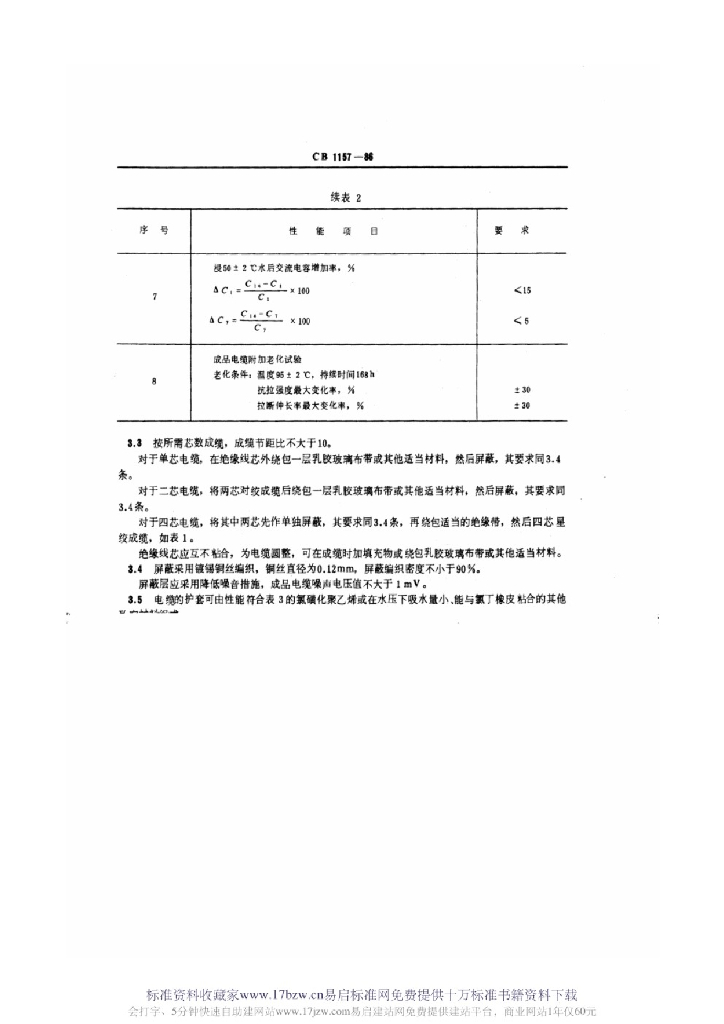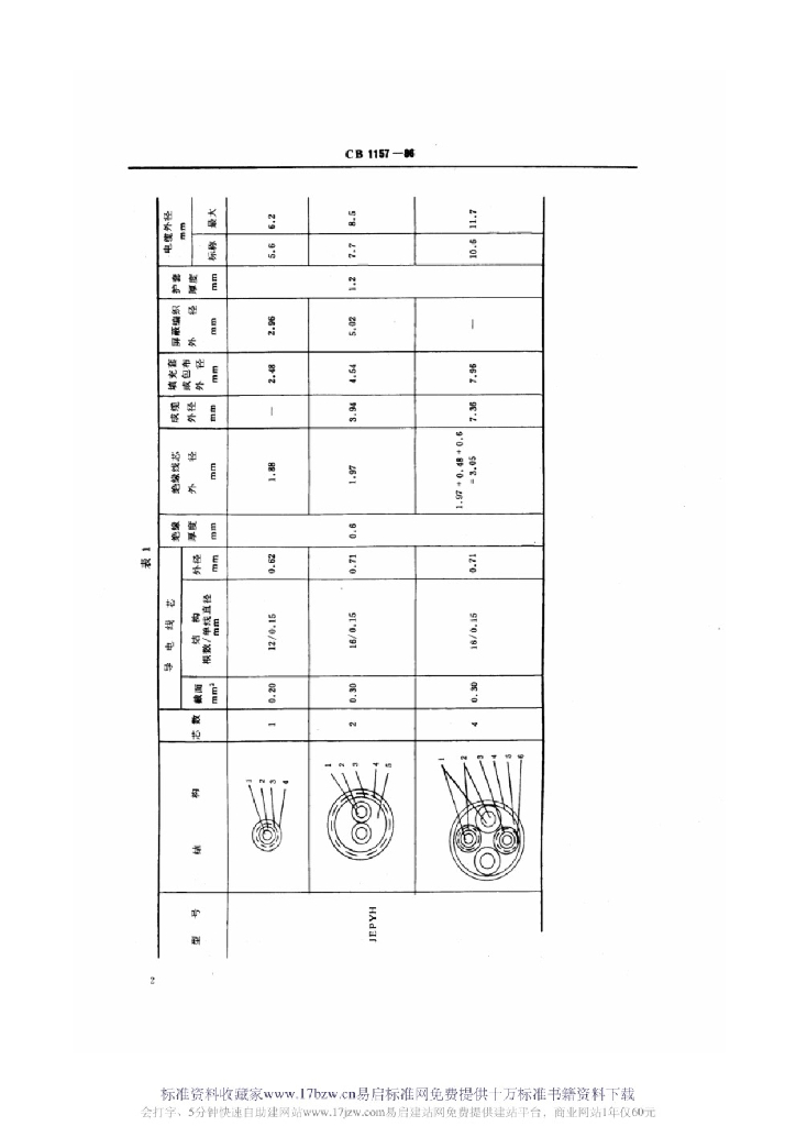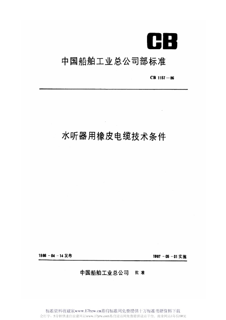 CB 1157-1986 水听器用橡皮电缆技术条件