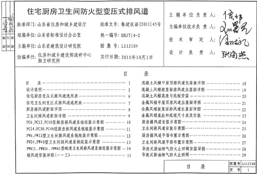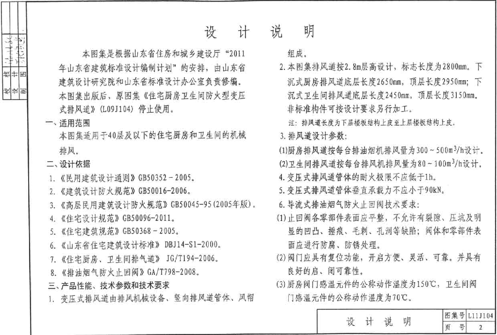 L11J104 住宅防火型集中排气系统图集(山东省地标)