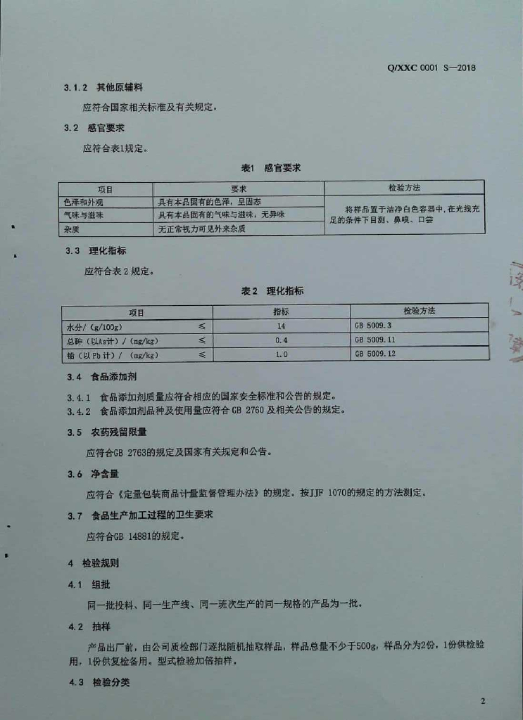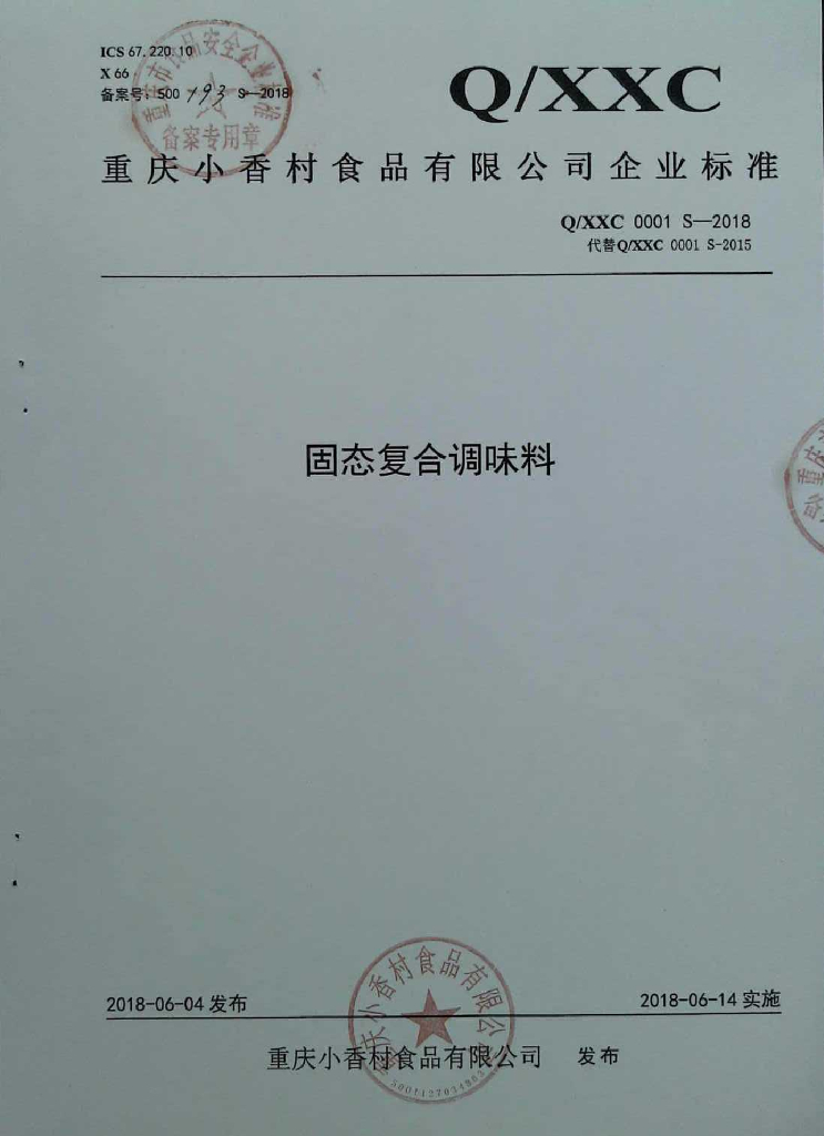Q/XXC 0001S-2018 固态复合调味料