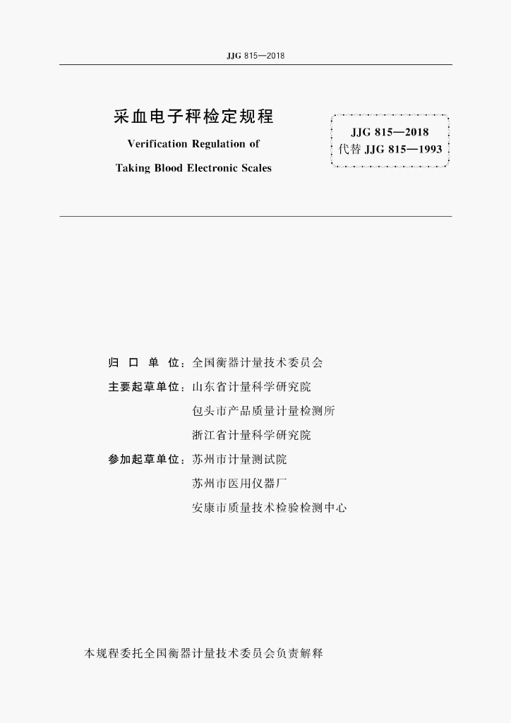 刘平(山东省计量科学研究院)、冯向辉(包头市产品质量计量检测所)、尚贤平(浙江省计量科学研究院)、杨普生(包头市产品质量计量检测所)、董晨光(苏州市计量测试院)、杨端端(苏州市医用仪器厂)、王斌(安康市质量技术检验检测中心〉