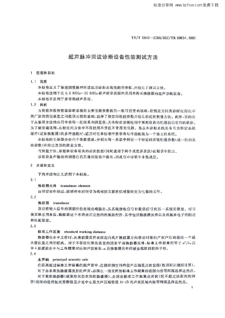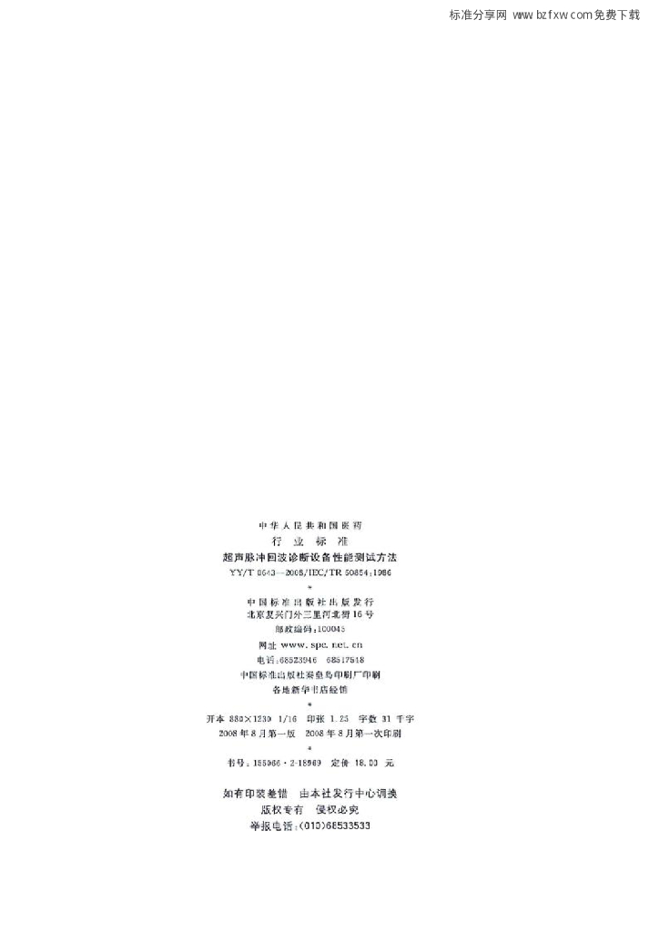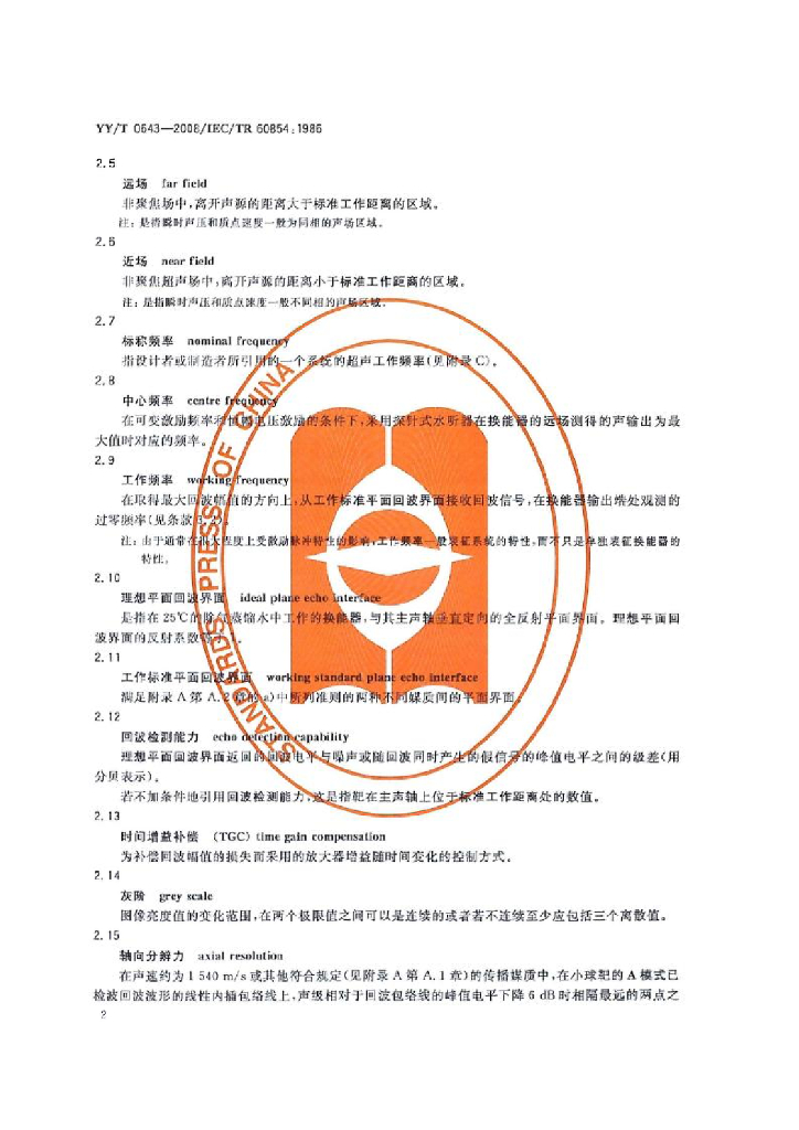 YY/T 0643-2008/ IEC/TR 60854: 198G 超声脉冲回波诊断设备性能测试方法