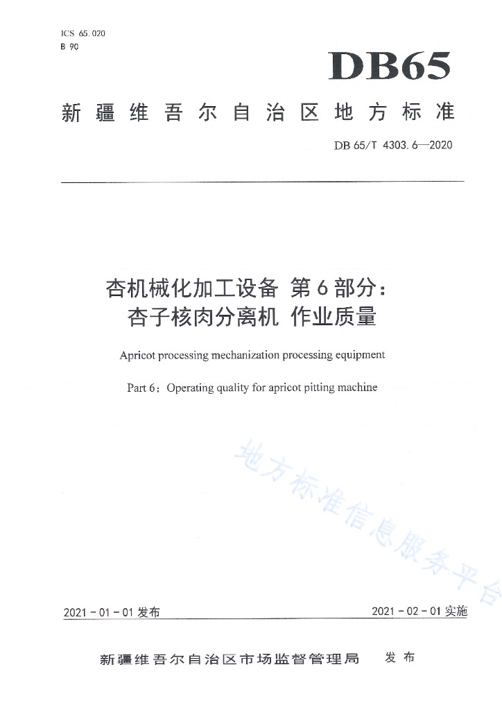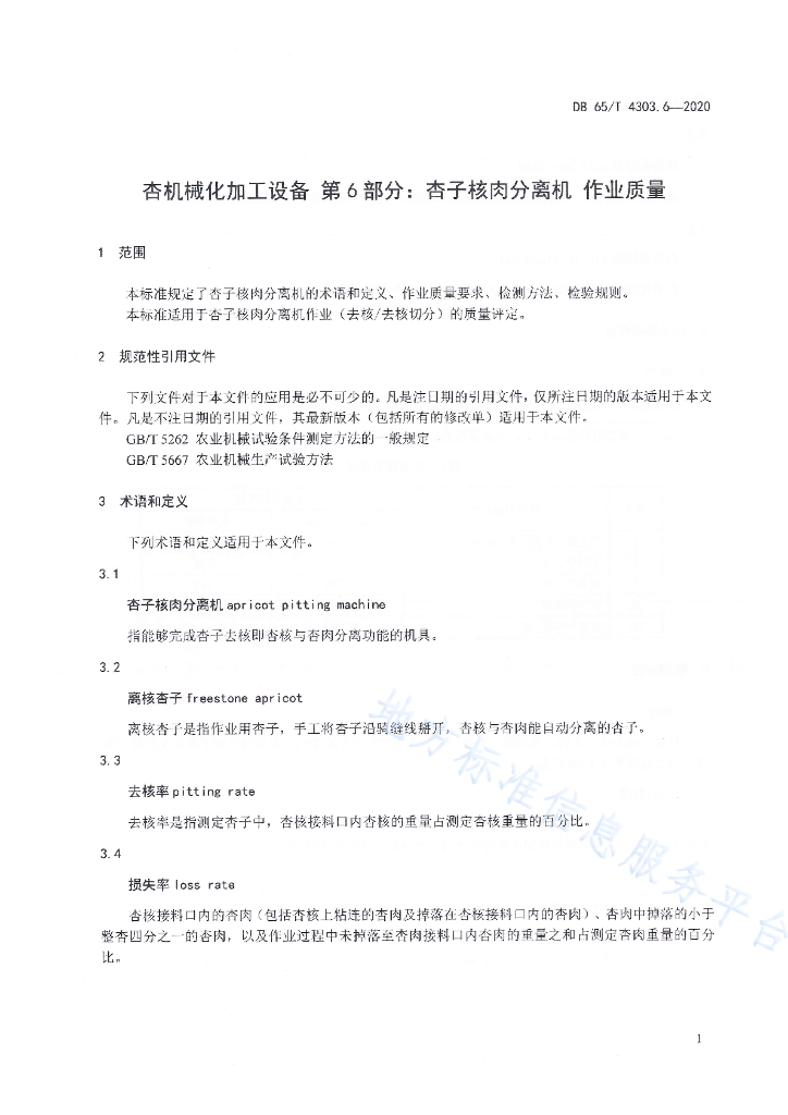 DB65/T 4303.6-2020 杏机械化加工设备 第6部分:杏子核肉分离机 作业质量