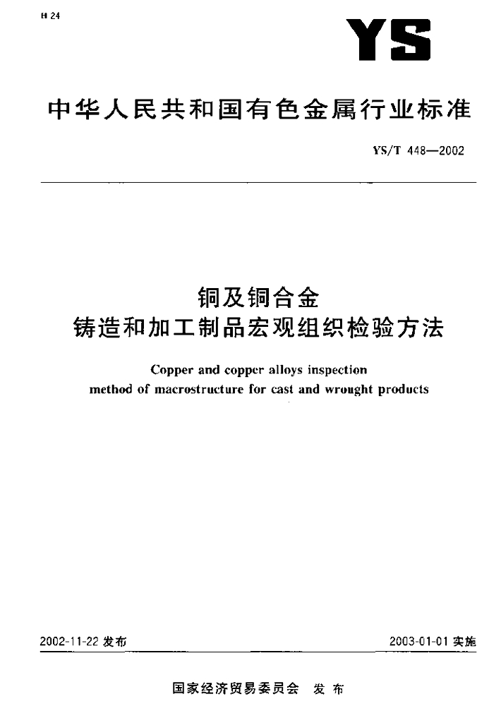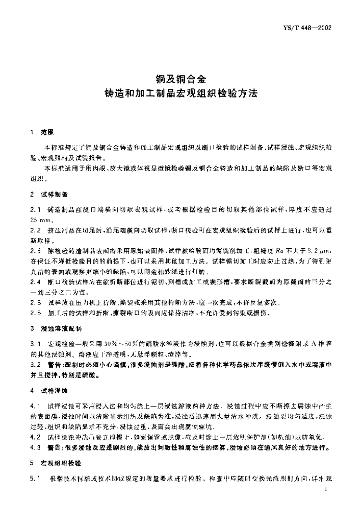 YS/T 448-2002 铜及铜合金铸造和加工制品宏观组织检验方法