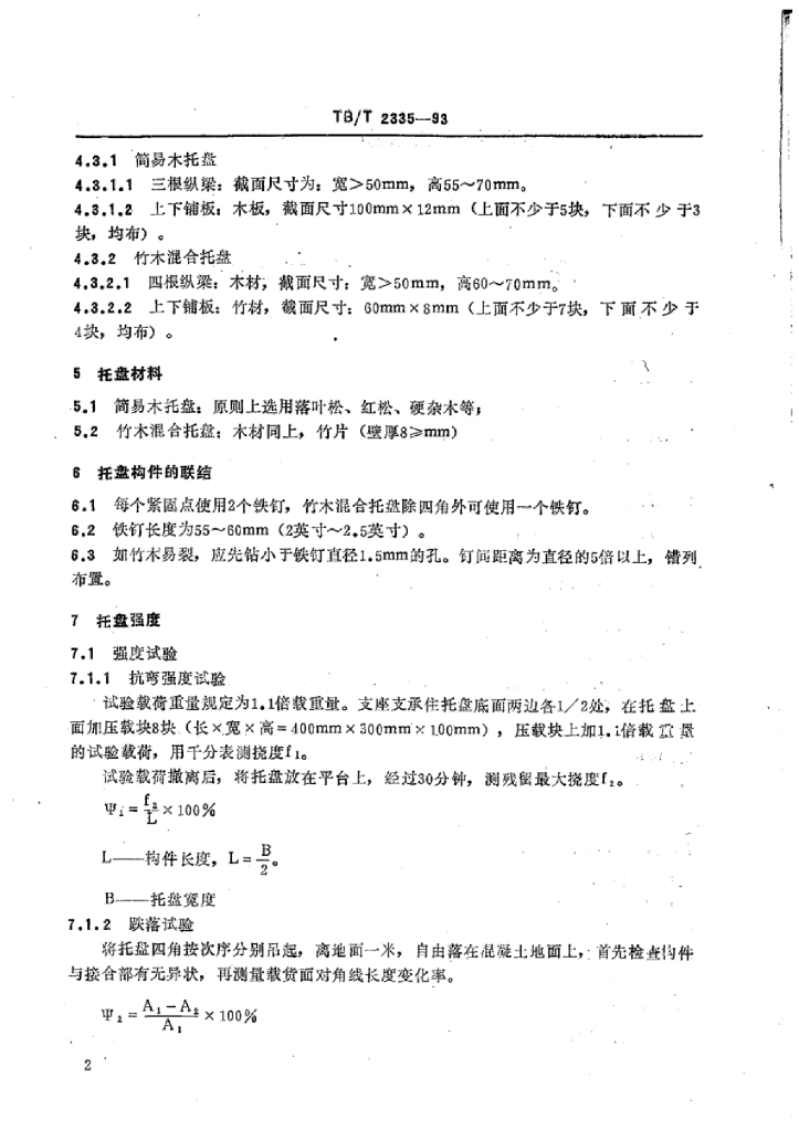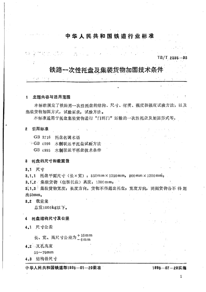 TB/T 2335-1993 铁路一次性托盘及集装货物加固技术条件