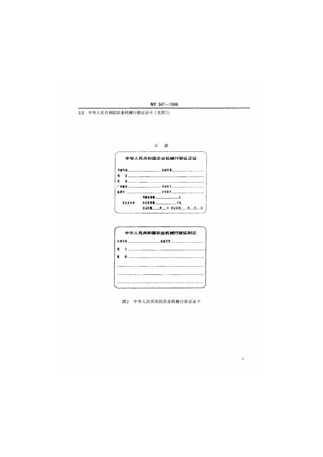 NY 347-1999 农业机械行驶证证件