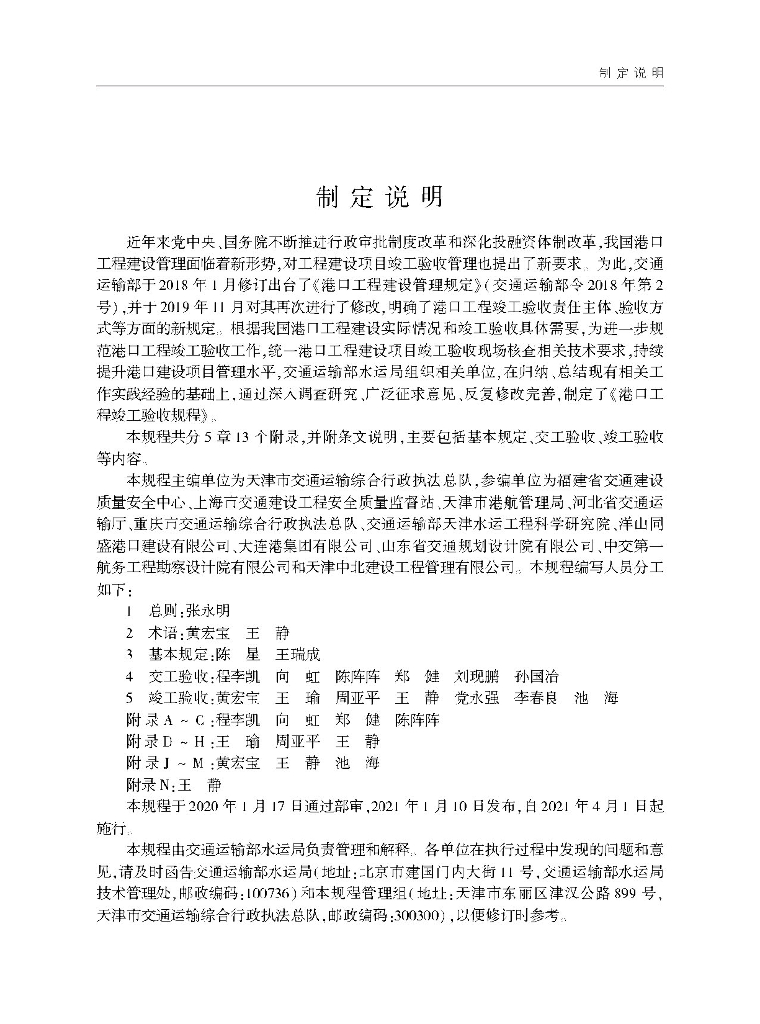 天津市交通运输综合行政执法总队、天津市港航管理局、福建省交通建设质量安全中心、上海市交通建设工程安全质量监督站、河北省交通运输厅、重庆市交通运输综合行政执法总队、交通运输部天津水运工程科学研究院、洋山同盛港口建设有限公司、大连港集团有限公司、山东省交通规划设计院有限公司、中交第一航务工程勘察设计院有限公司、天津中北建设工程管理有限公司