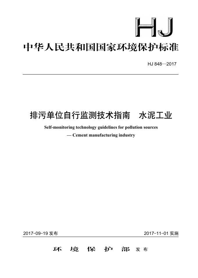 HJ 848-2017 排污单位自行监测技术指南 水泥工业