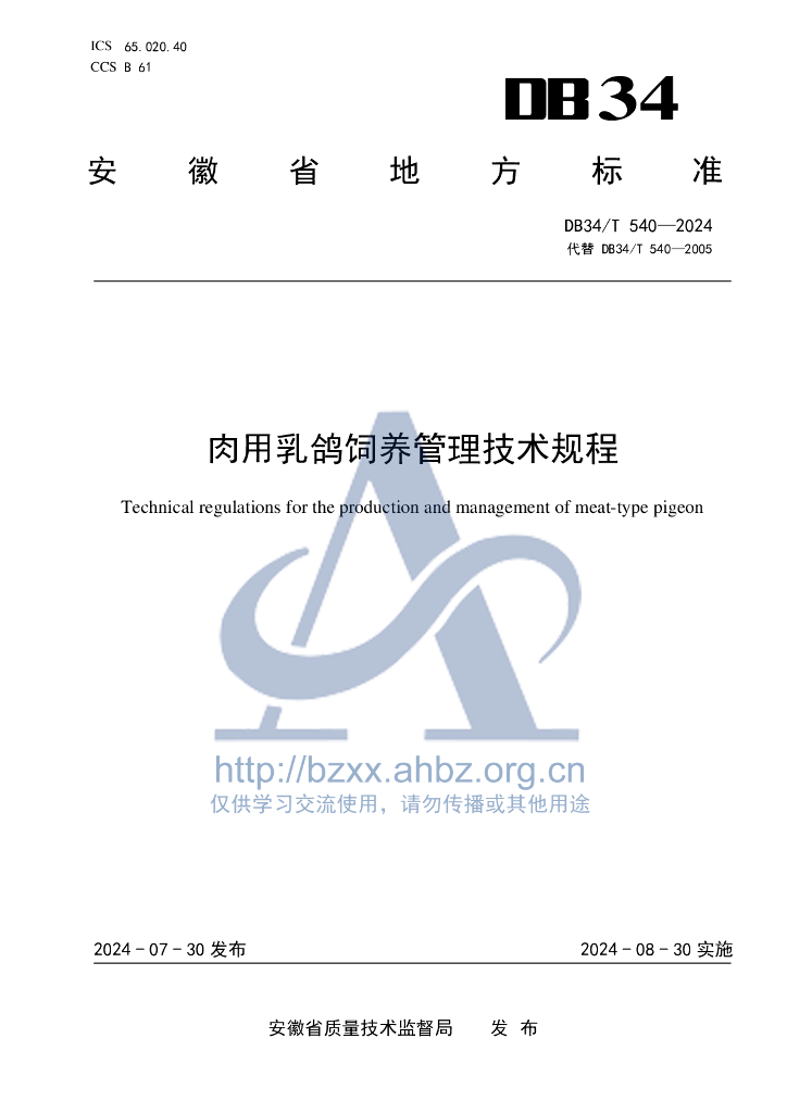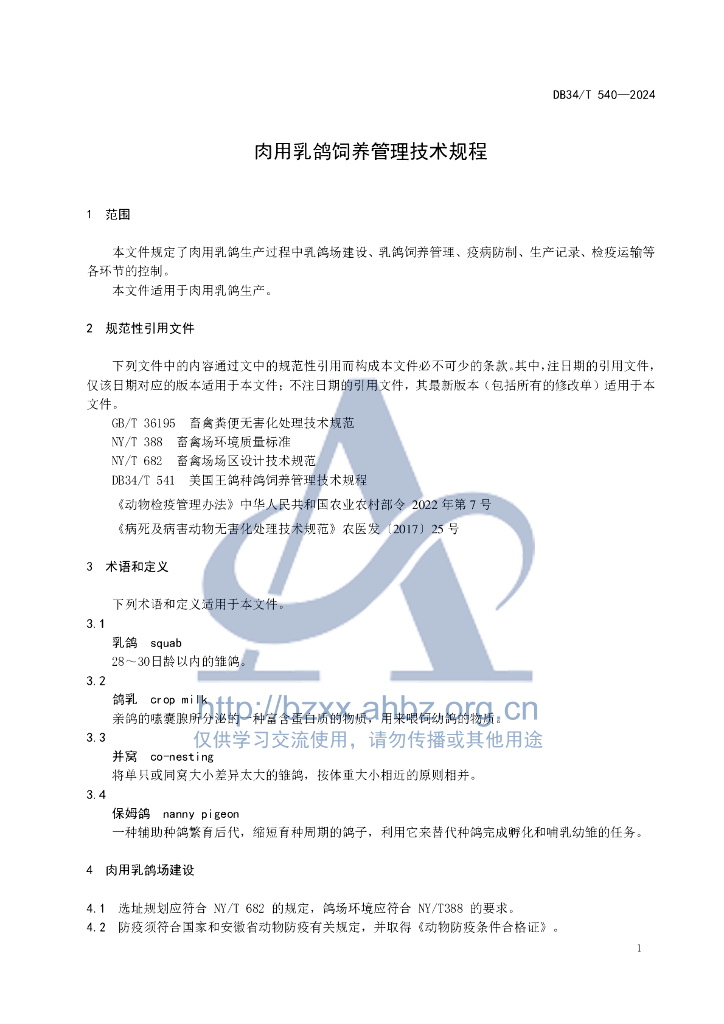 DB34/T 540-2024 肉用乳鸽饲养管理技术规程