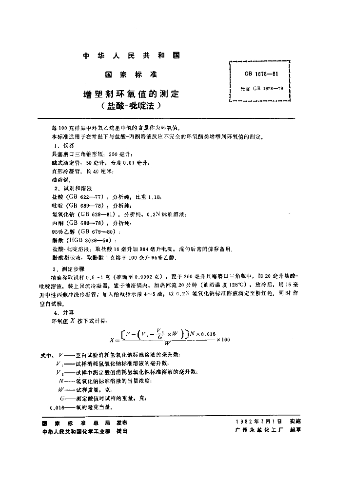 GB/T 1678-1981 增塑剂环氧值的测定 (盐酸-吡啶法)